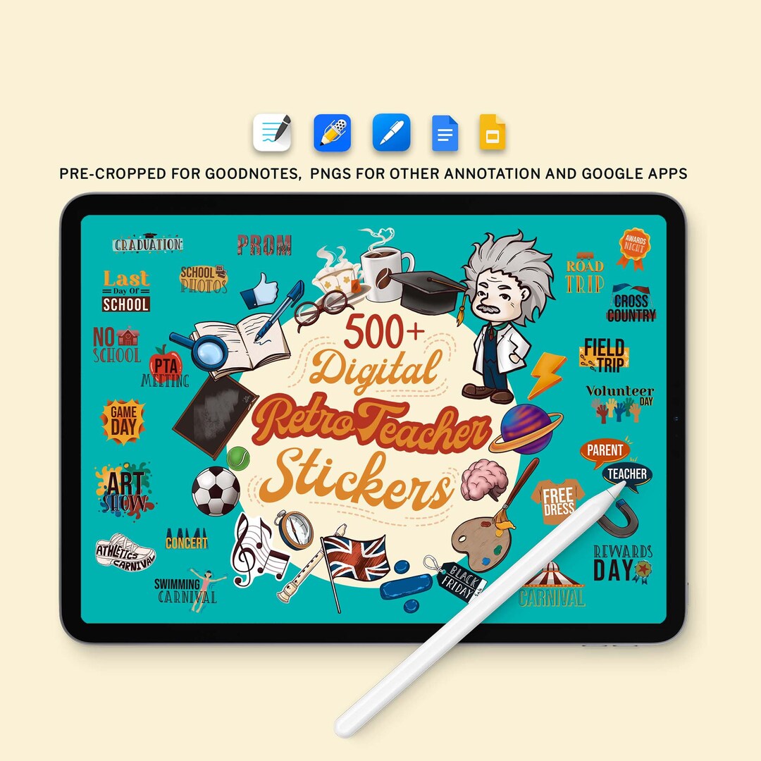 Retro Teacher Sticker Pack, 500+ Png Digital Planner Stickers, Pre ...