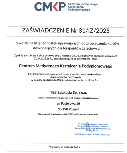 Akredytacja TERAPEUTA ZAJĘCIOWY | Szkoły policealne TEB Edukacja