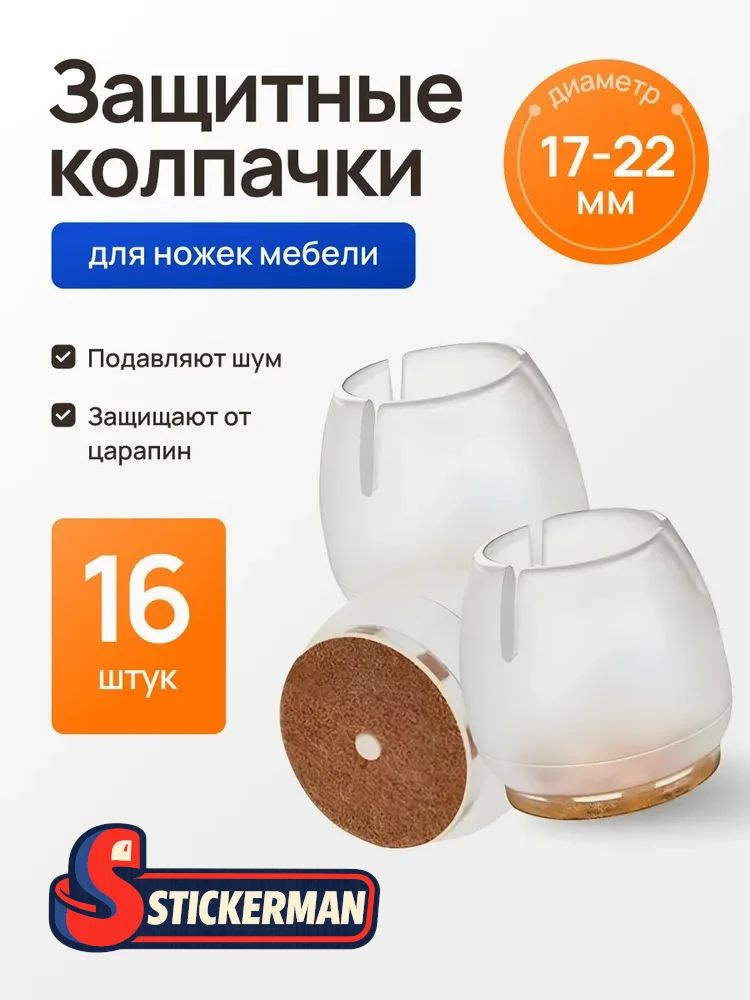 STICKERMAN Силиконовые накладки 16 шт. на мебель, на ножки стула ...