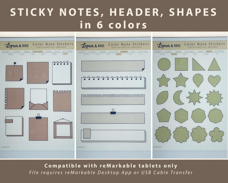 Color Note Stickers for Remarkable Paper Pro and Move: Letters, Banners ...