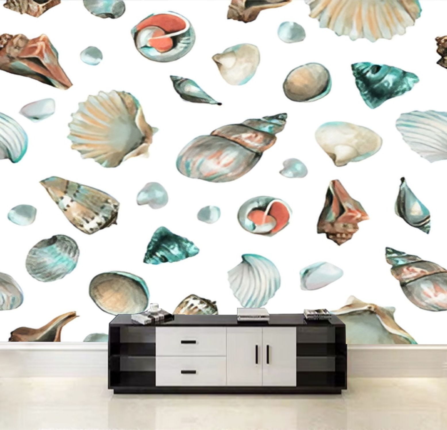 S4Sassy Peel and Stick Wall Covering, Sea Life Watercolor Shells ...