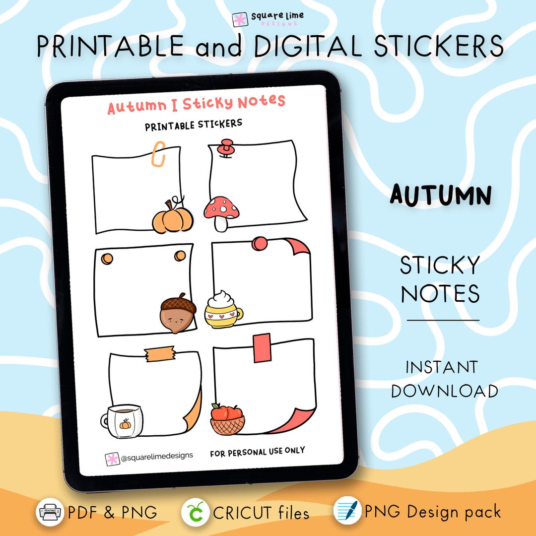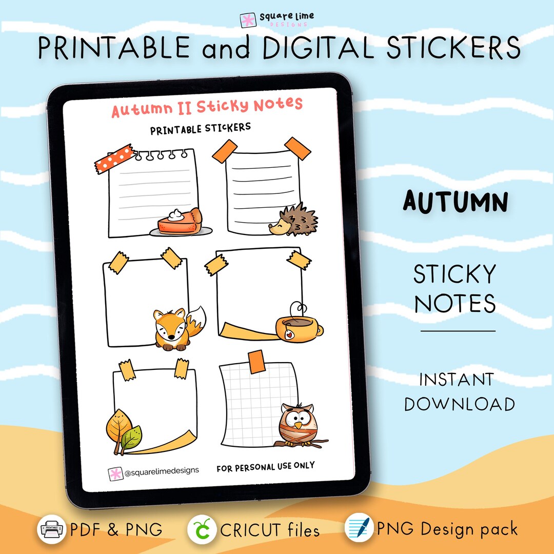 Autumn Sticky Notes Stickers – Printable & Digital Designs – PDF, PNG ...