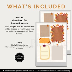 Fall Sticky Notes Template for Remarkable Paper Pro, Remarkable 2, Cute ...