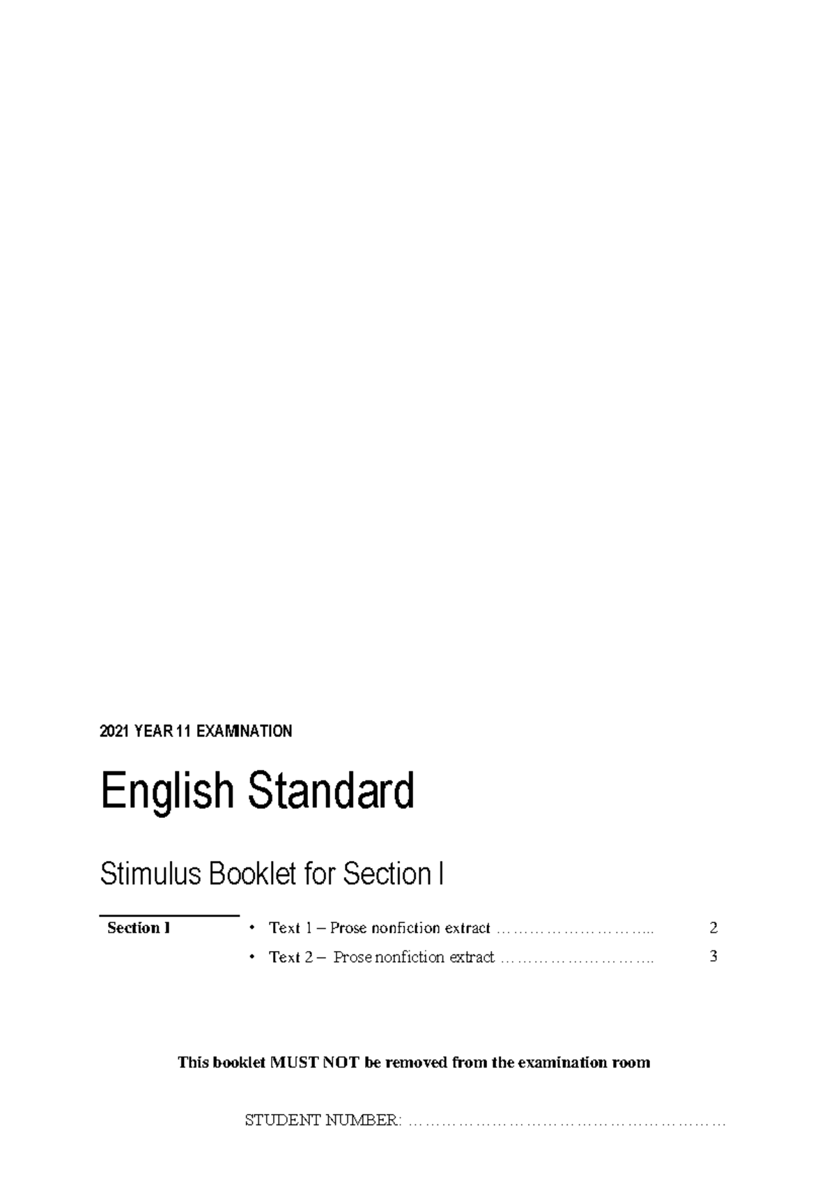 2023 YEAR 11 ENGLISH STANDARD EXAM - Stimulus Booklet - Studocu