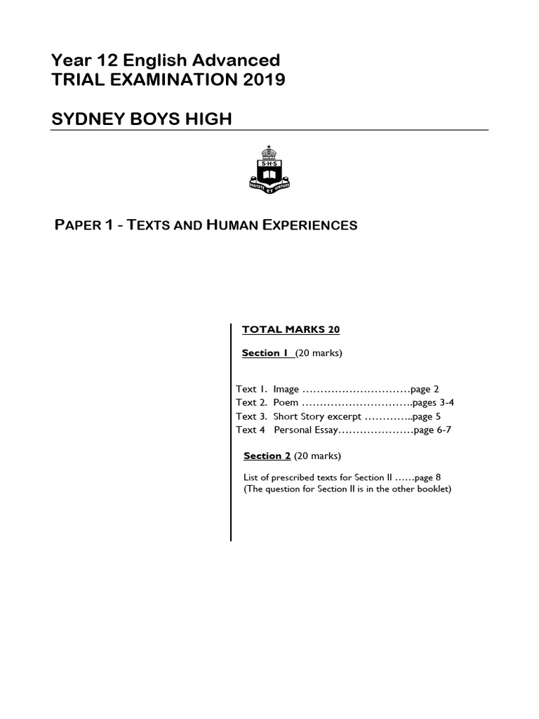 Sydney Boys 2019 Trial Paper 1 Stimulus Booklet | PDF