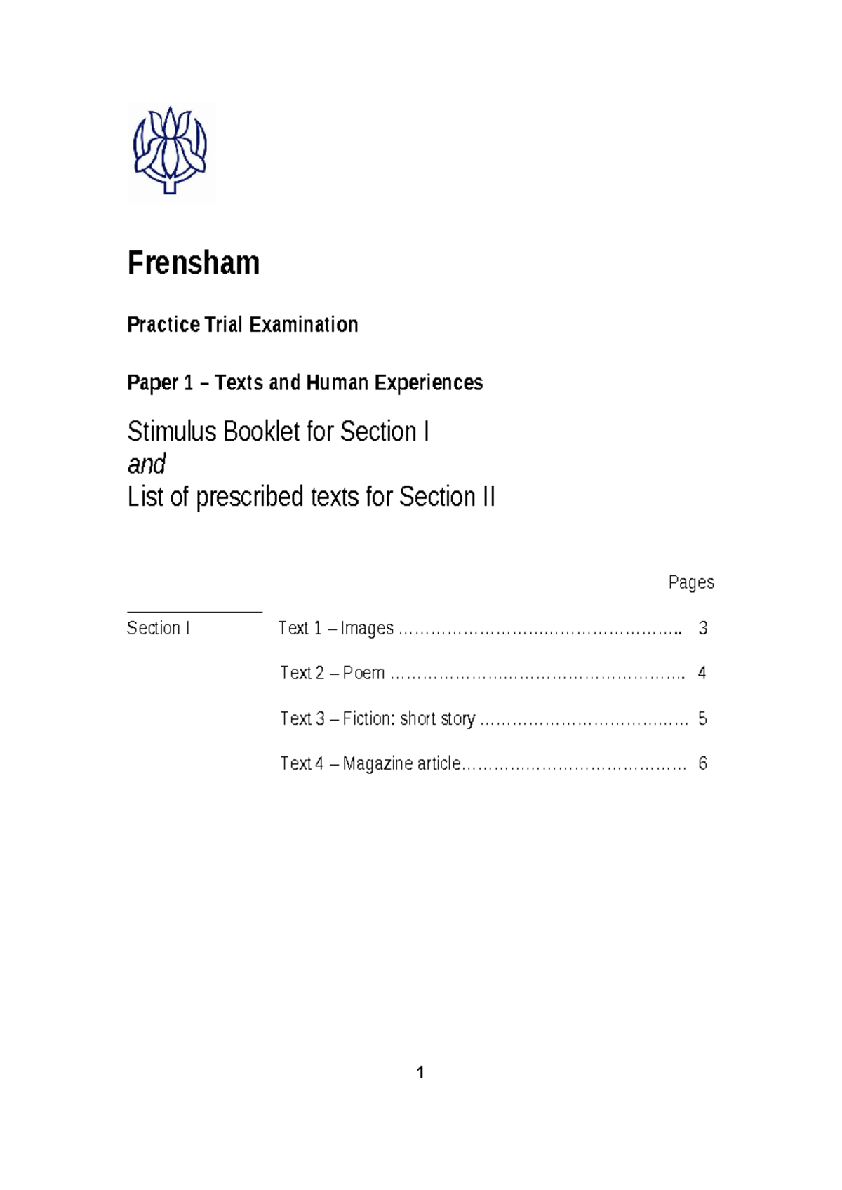 Year 11 Practice Paper Stimulus Booklet-2 - Section 1 Text 1 – Visual ...