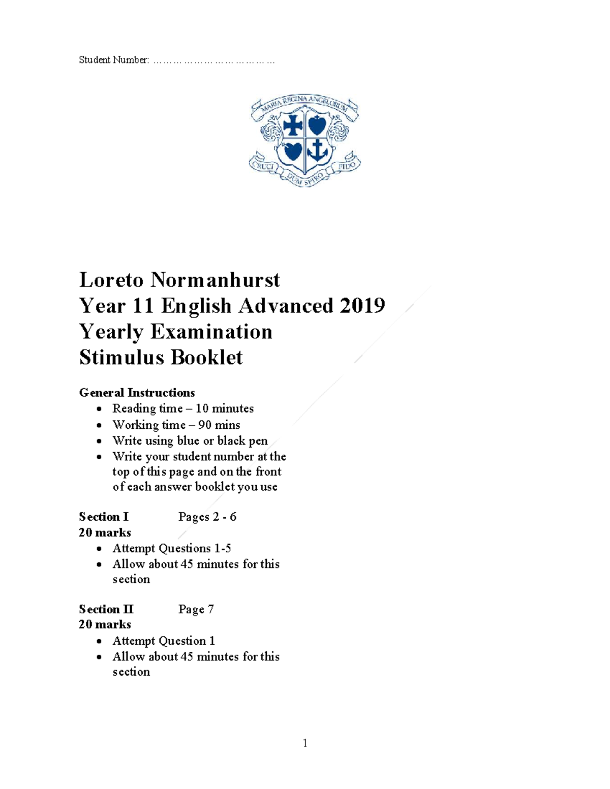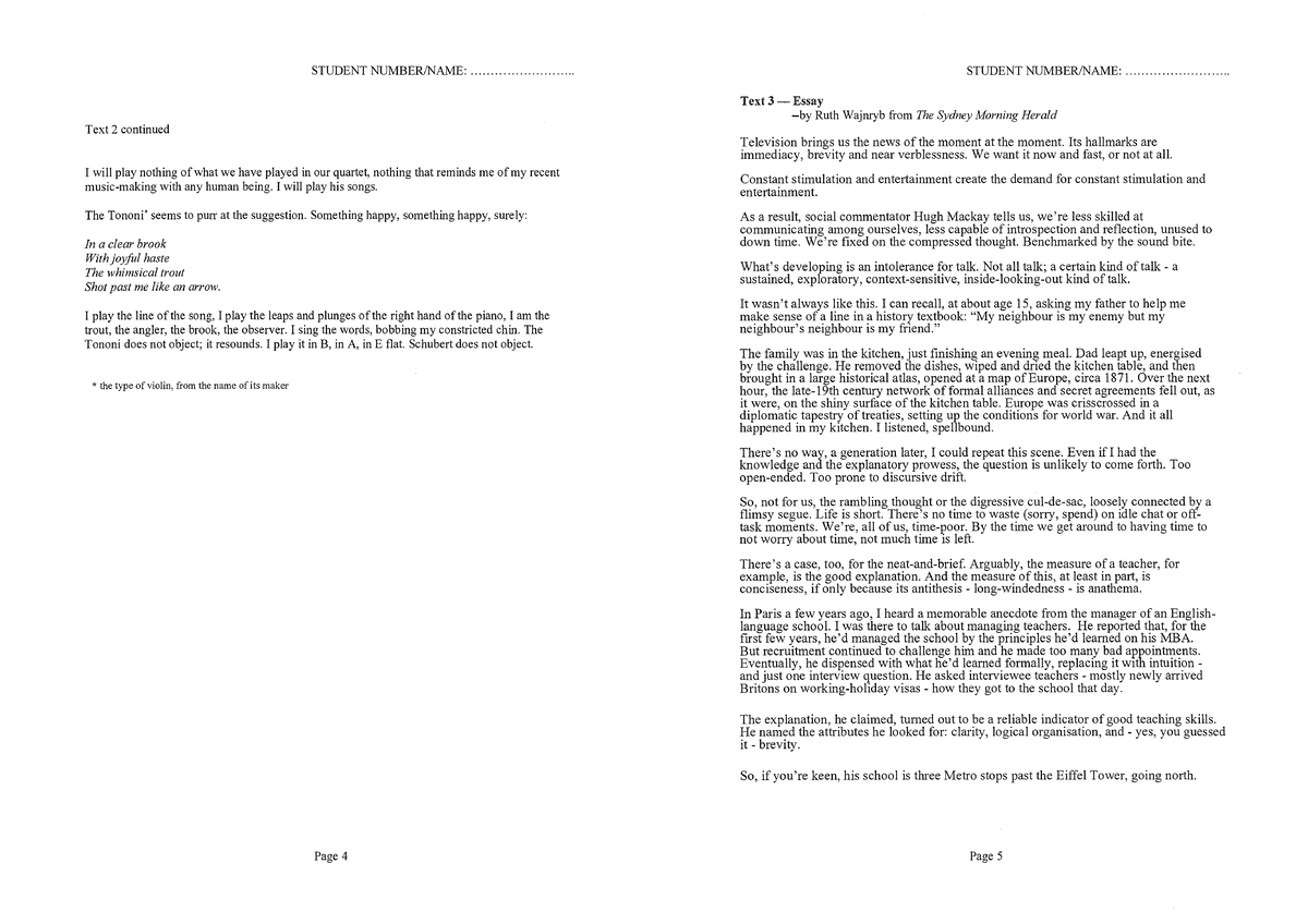English Stimulus Booklet - STUDENT NUMBER: - Studocu