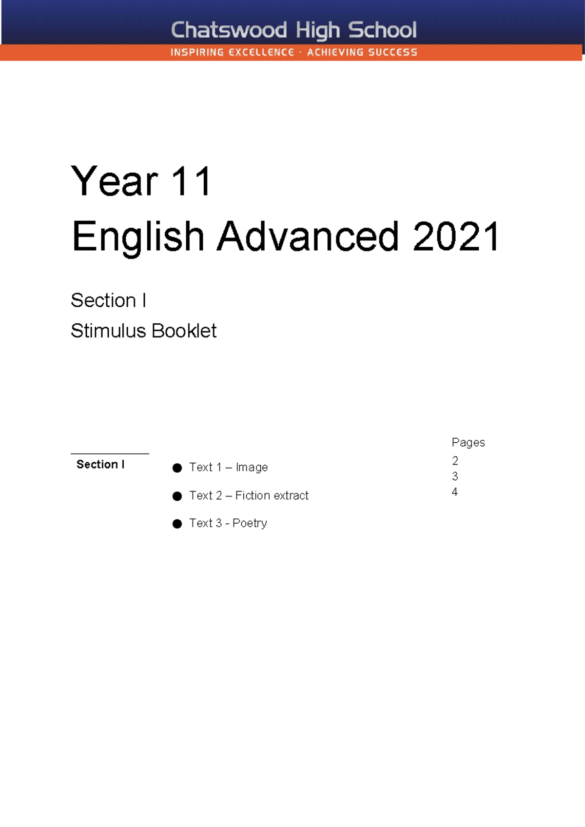 Year 11 English Advanced: Comprehension Task Stimulus Booklet 2024 ...