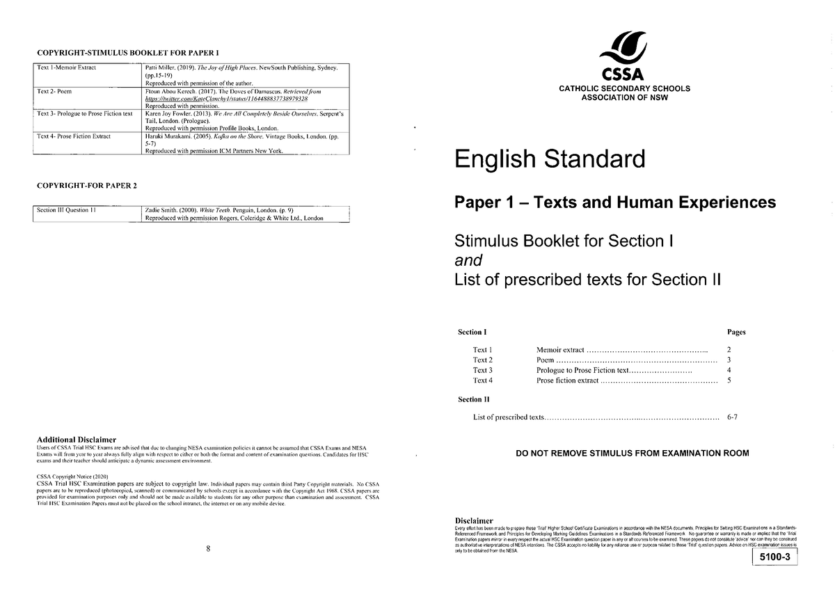 Standard Paper 1 Stimulus Booklet for HSC English (CSSA) - Studocu
