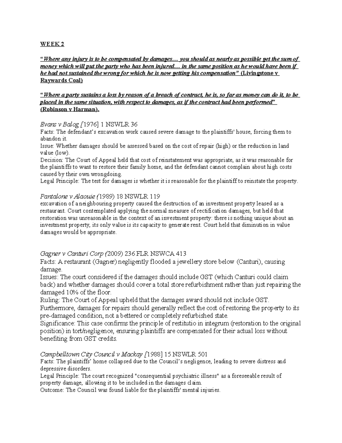 LLB3300 Week 2 Remedies Case Notes: Key Legal Principles and Outcomes ...