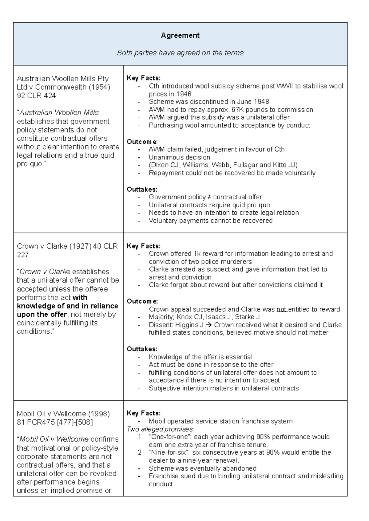 Contracts Agreement Case Note Summary: Key Cases & Outcomes - Studocu