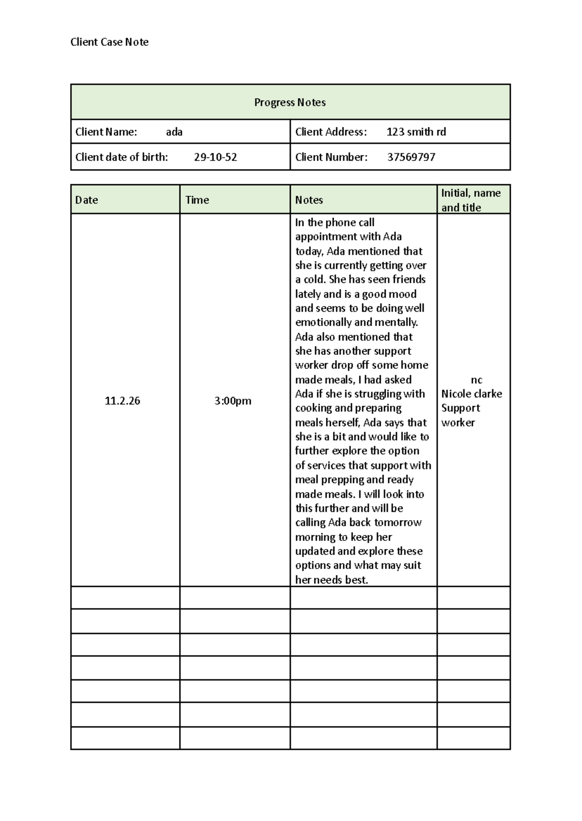 Client Case Note: Progress Update for Ada (Client #37569797) - Studocu