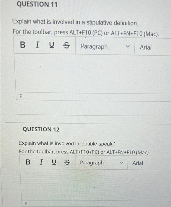 QUESTION 11 Explain what is involved in a stipulative | Chegg.com