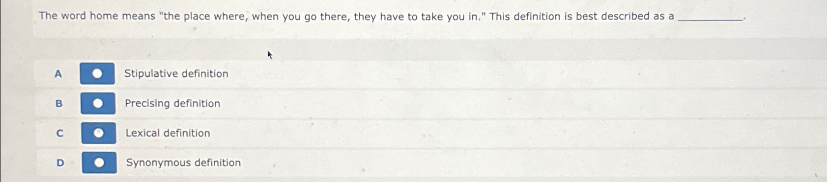 Solved Indicate which type of definition is exemplified by | Chegg.com