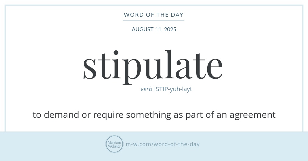 Word of the Day: Stipulate | Compliment words, Word of the day, Good ...