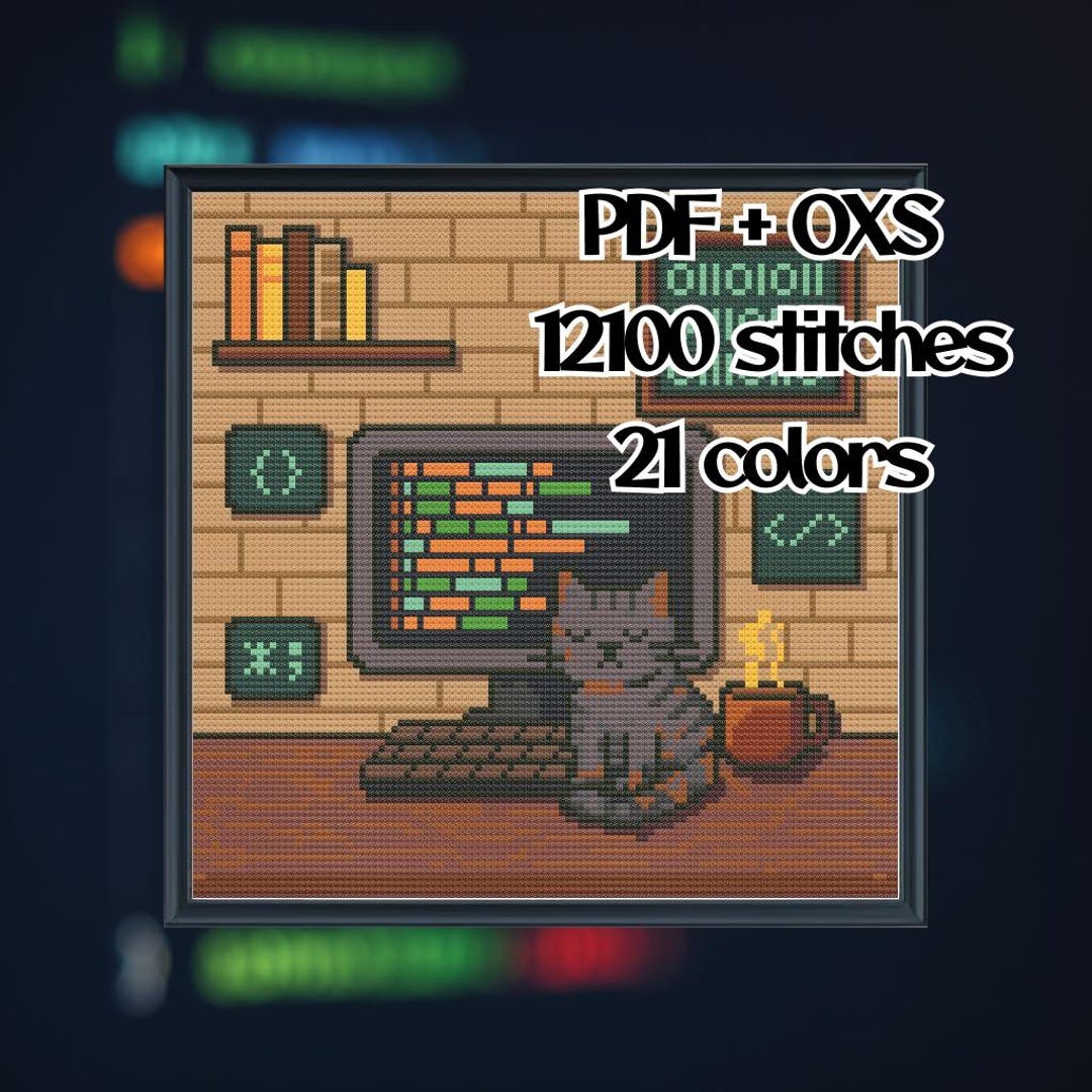 Coding Cat Cross Stitch Pattern: Geeky Programmer Gift (PDF + OXS File ...