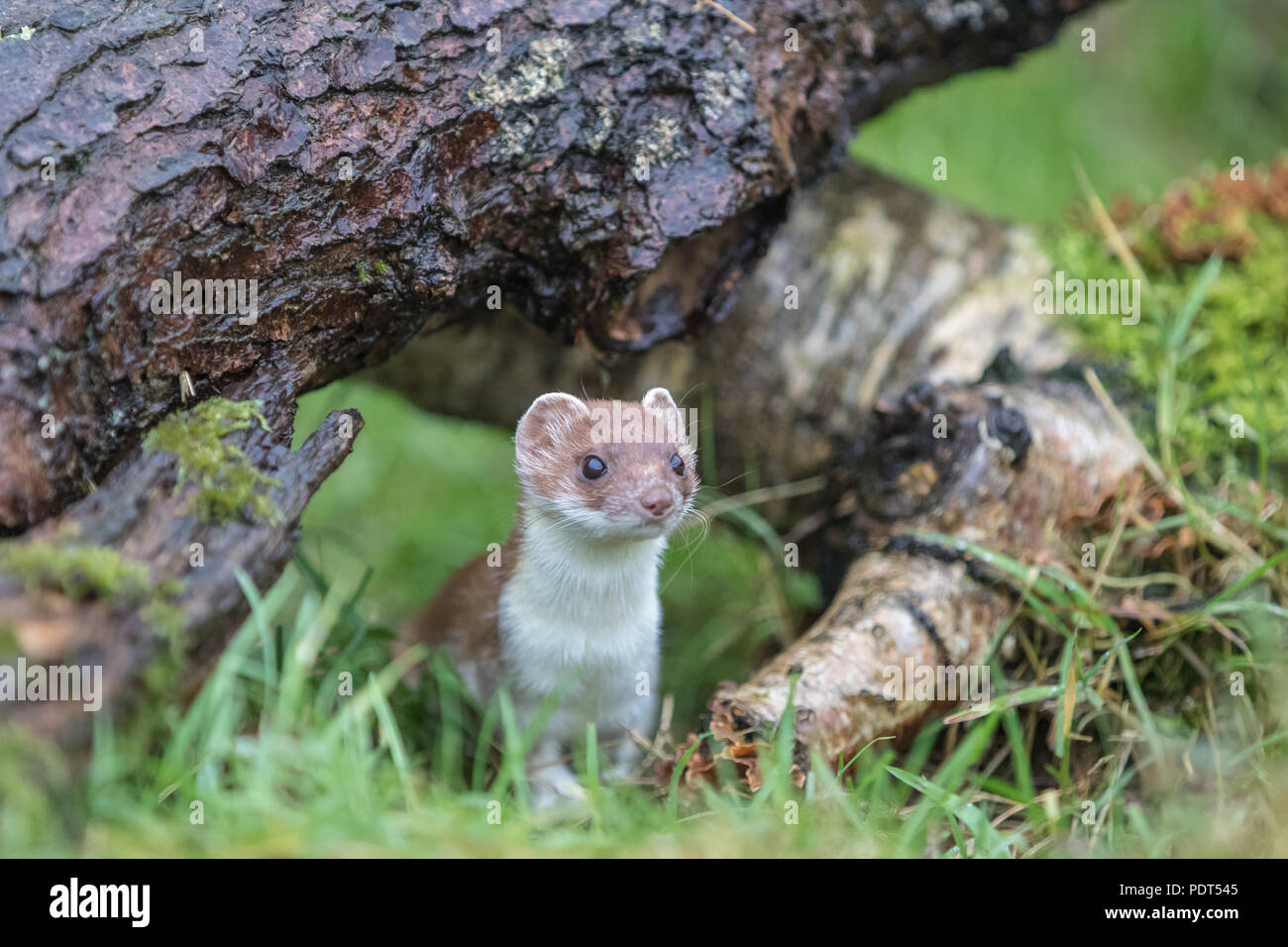 Stoat in the forest, Mustela erminea Stock Photo - Alamy