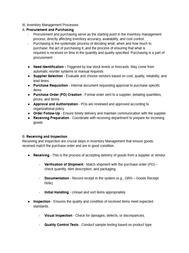 Inventory Management Processes And Procedures