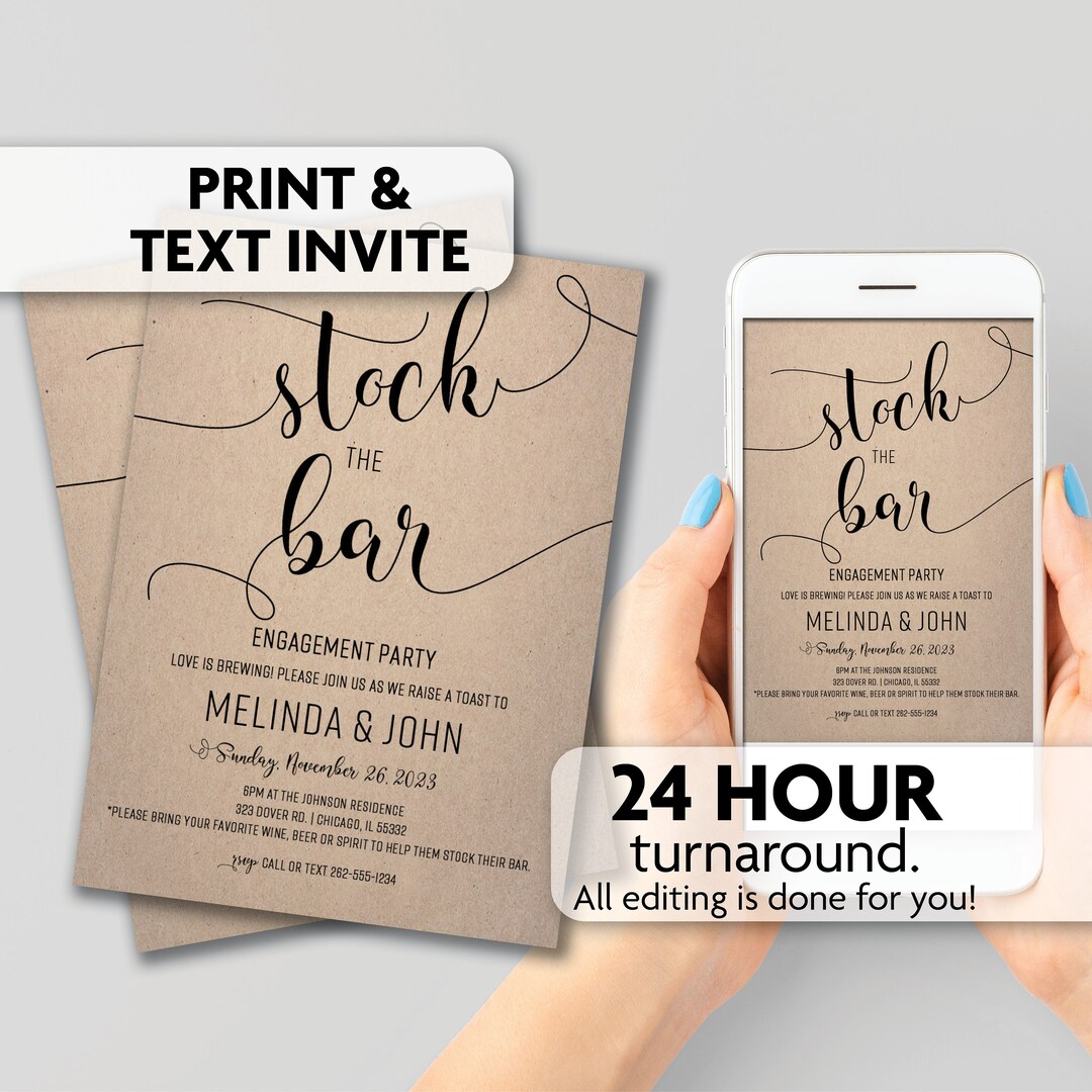 Stock the Bar Engagement Invitation Print Text or Email - Etsy