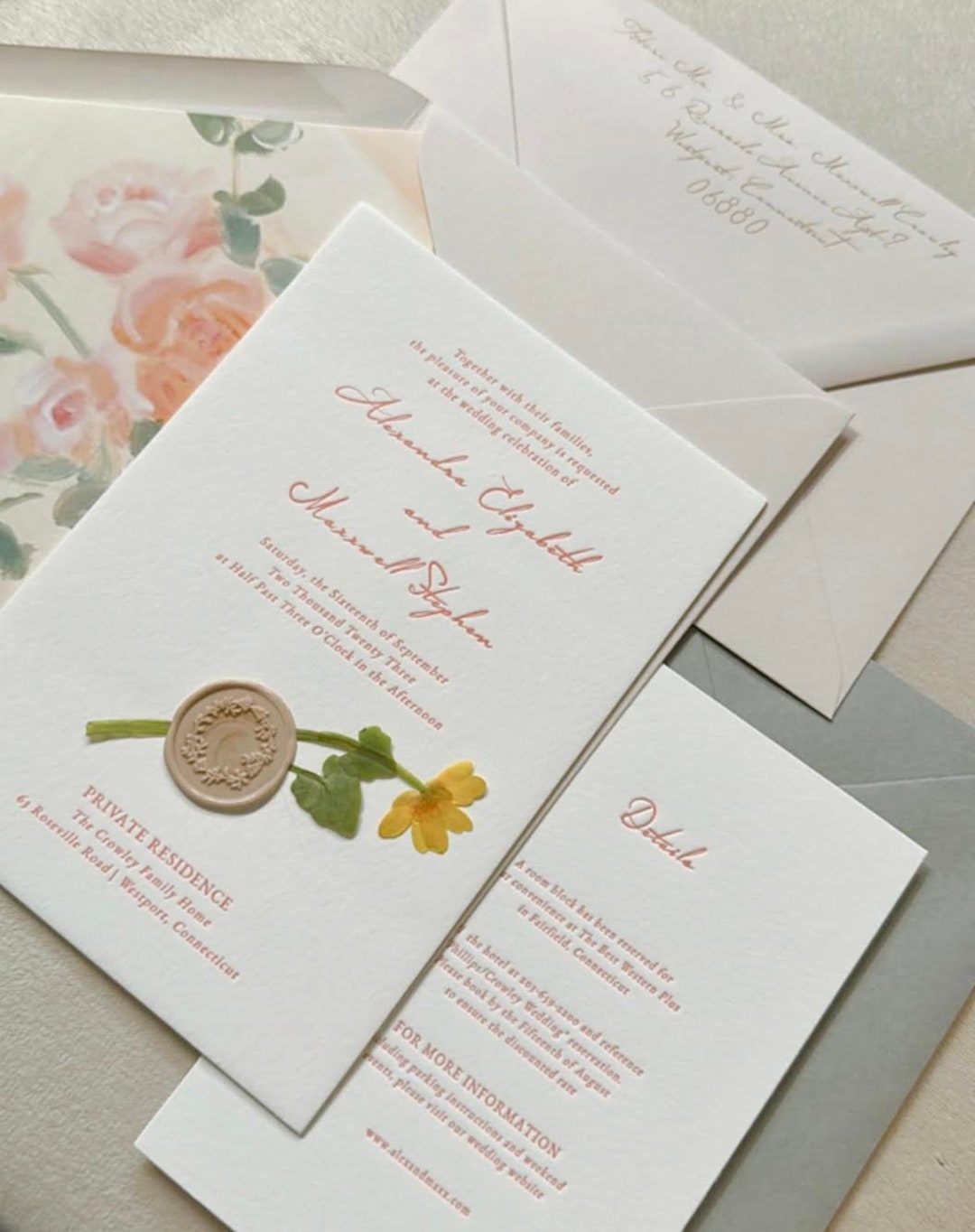 Letterpress Wildflower Wedding Invitation and Envelope, Semi-custom ...