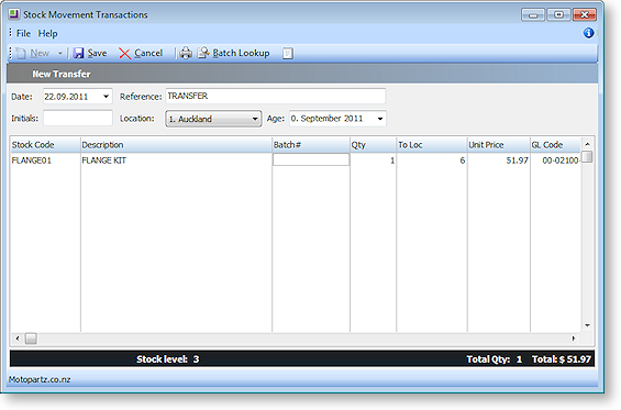 Entering a Stock Movement Transaction