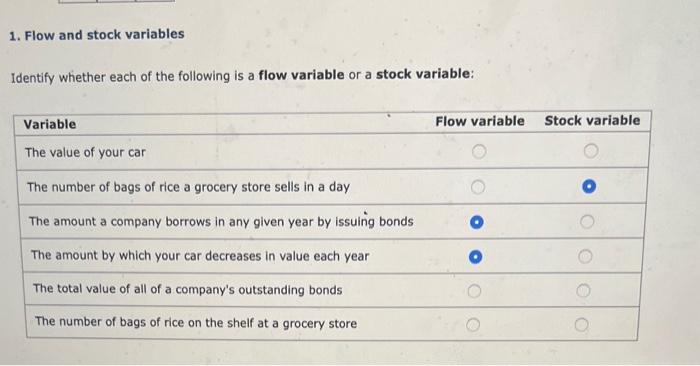 Solved 1. Flow and stock variables Identify whether each of | Chegg.com