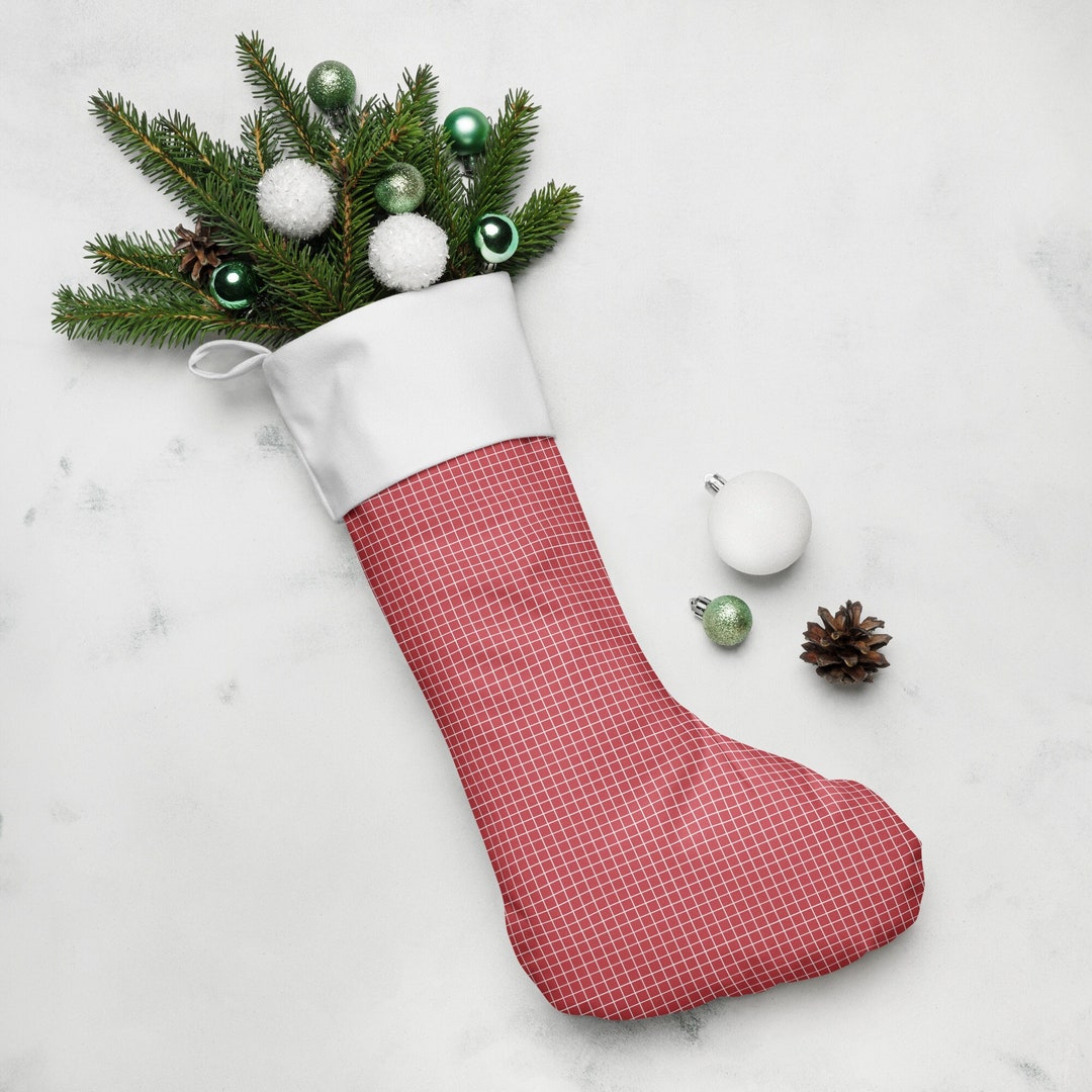 Christmas Stocking Red Grid Square Box Design Gift Decoration - Etsy