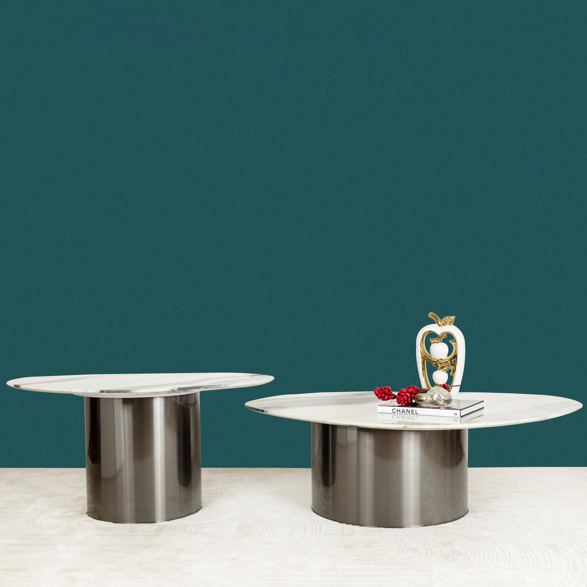 Panda Stone Centre Table Set of 2 in Black Stainless Steel – Dekor Company