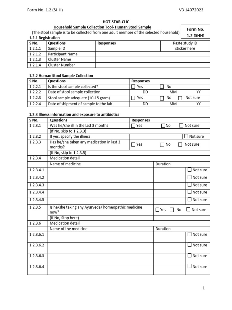 Form 1.2 Household Sample Collection Tool - Human Stool Sample | PDF ...