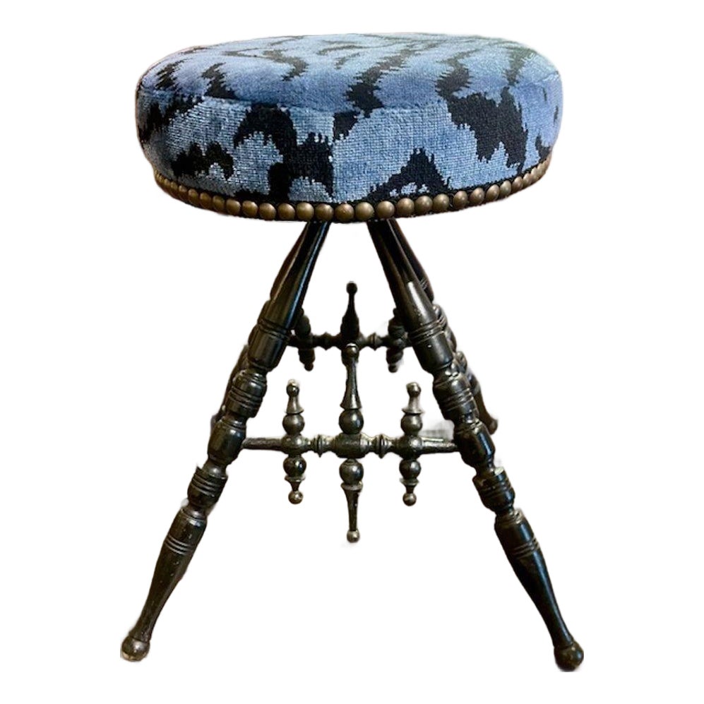 English Regency Ebonized Stool With Scalamandre Tiger Velvet | Chairish