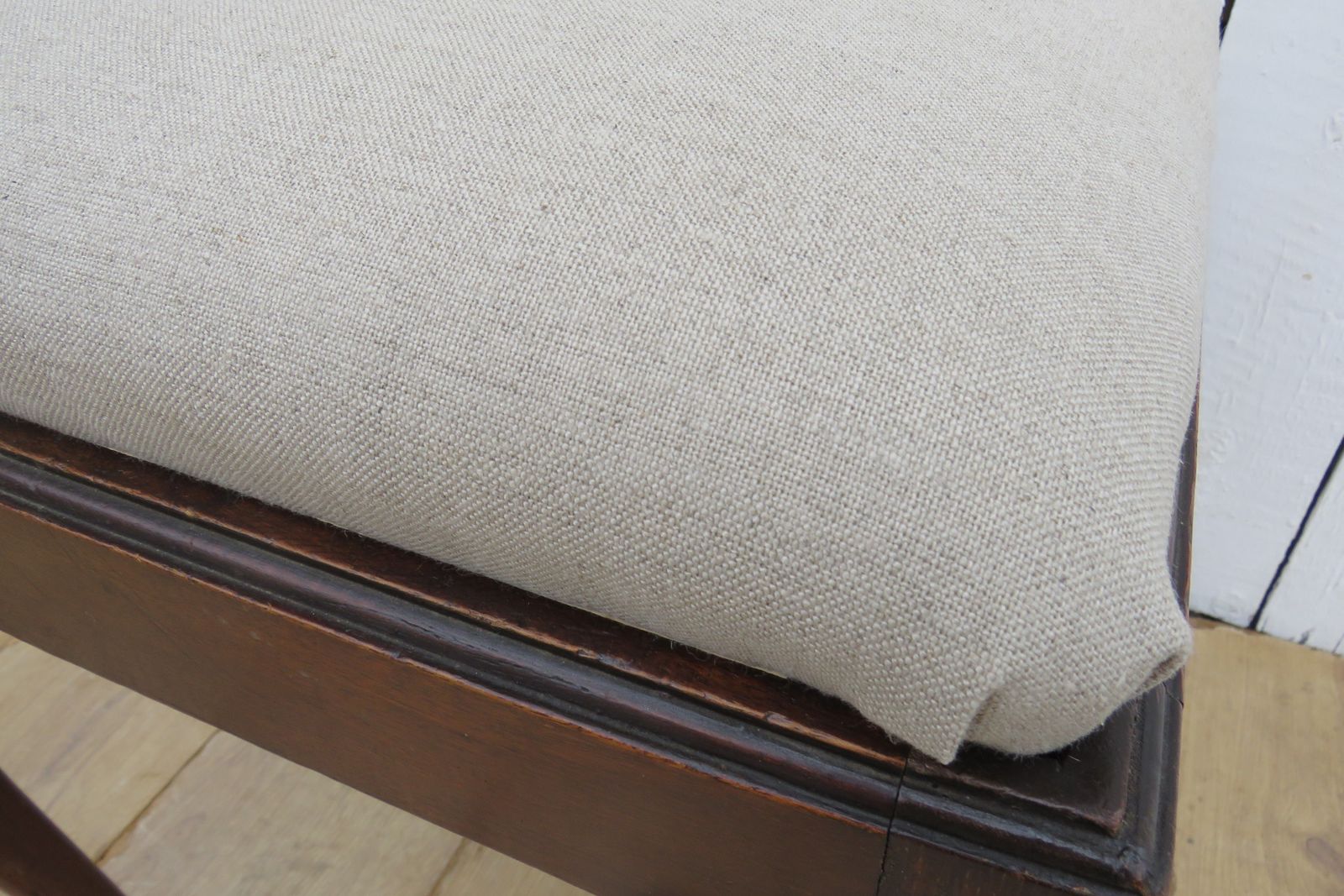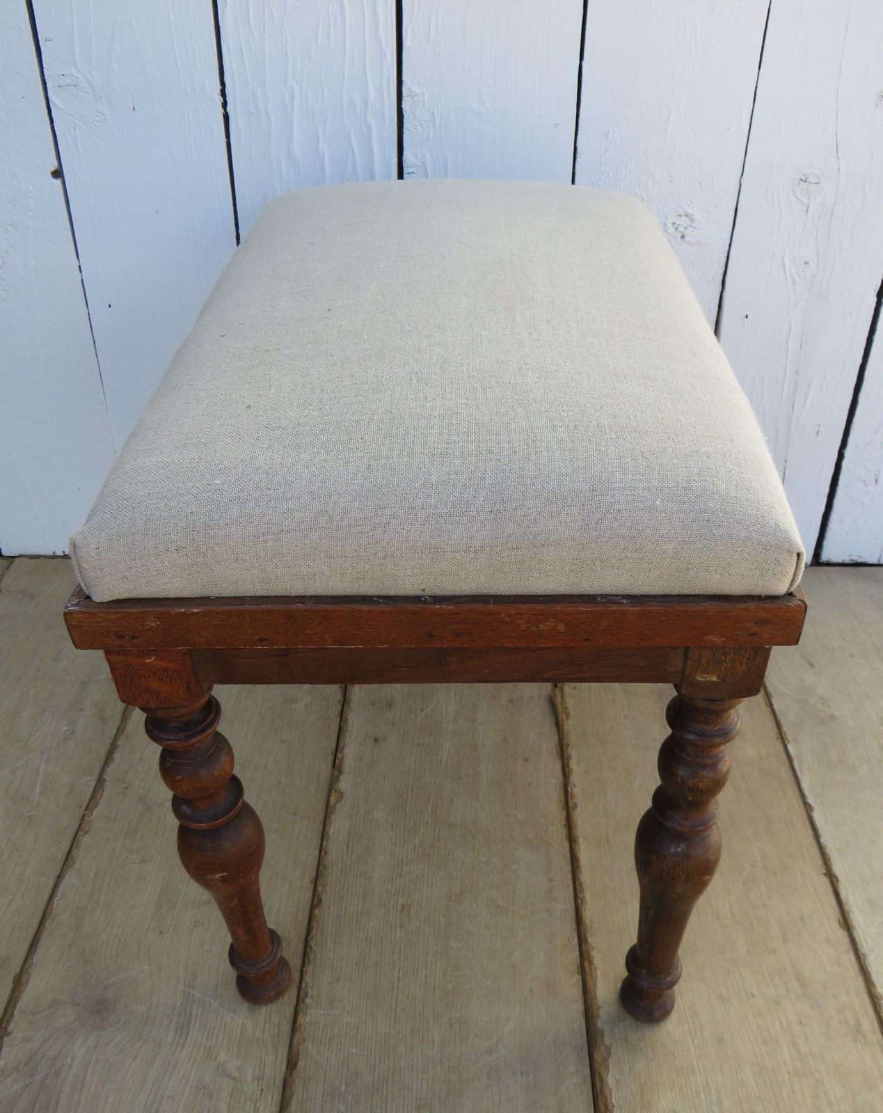 Antique Oak & Linen Foot Stool | Vinterior
