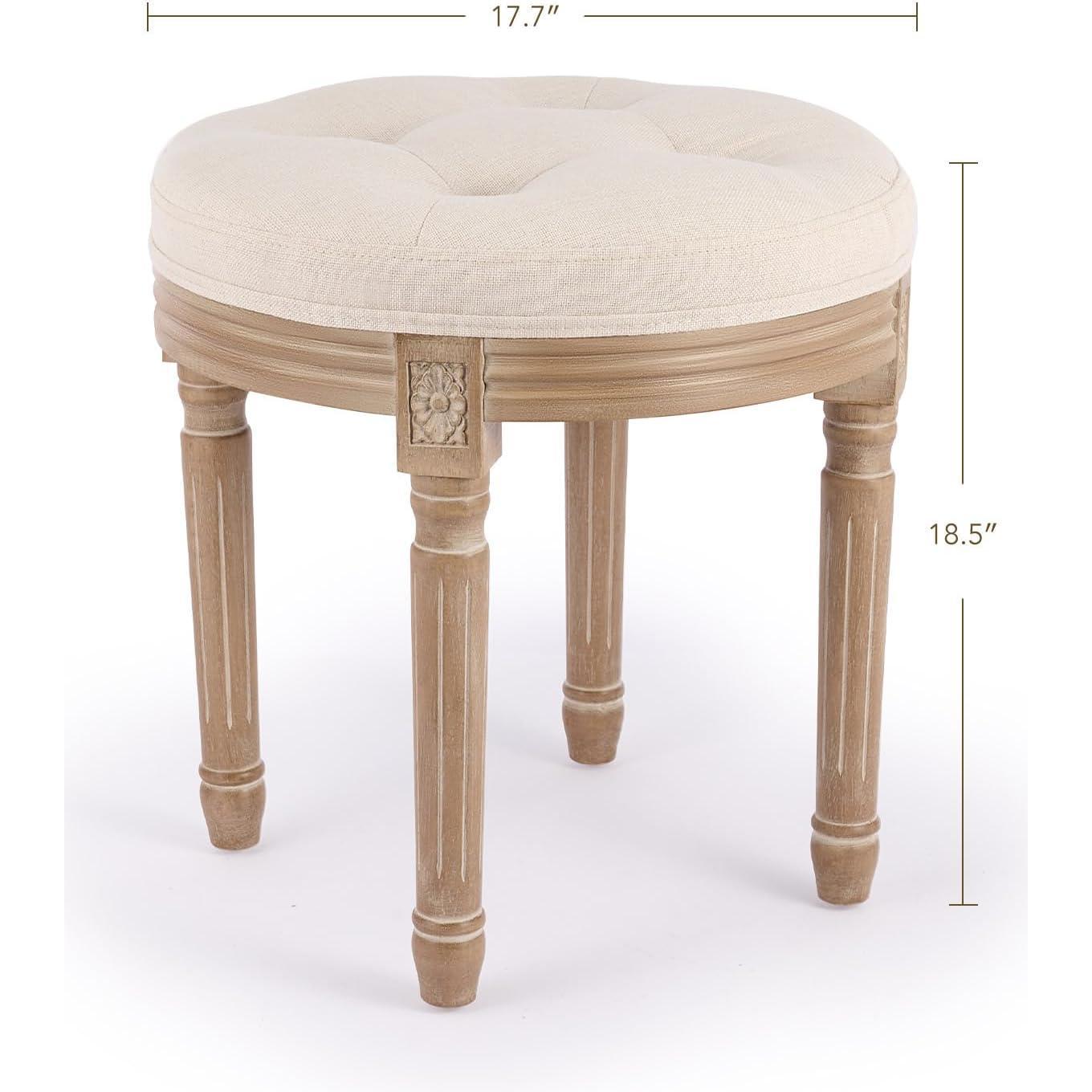 Round Brushed Stool with Tufting, 18-Inch, Beige - TikTok Shop