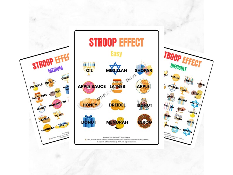 CHANUKAH HANUKKAH Stroop Effect Printable Worksheets L OT Created - Etsy UK