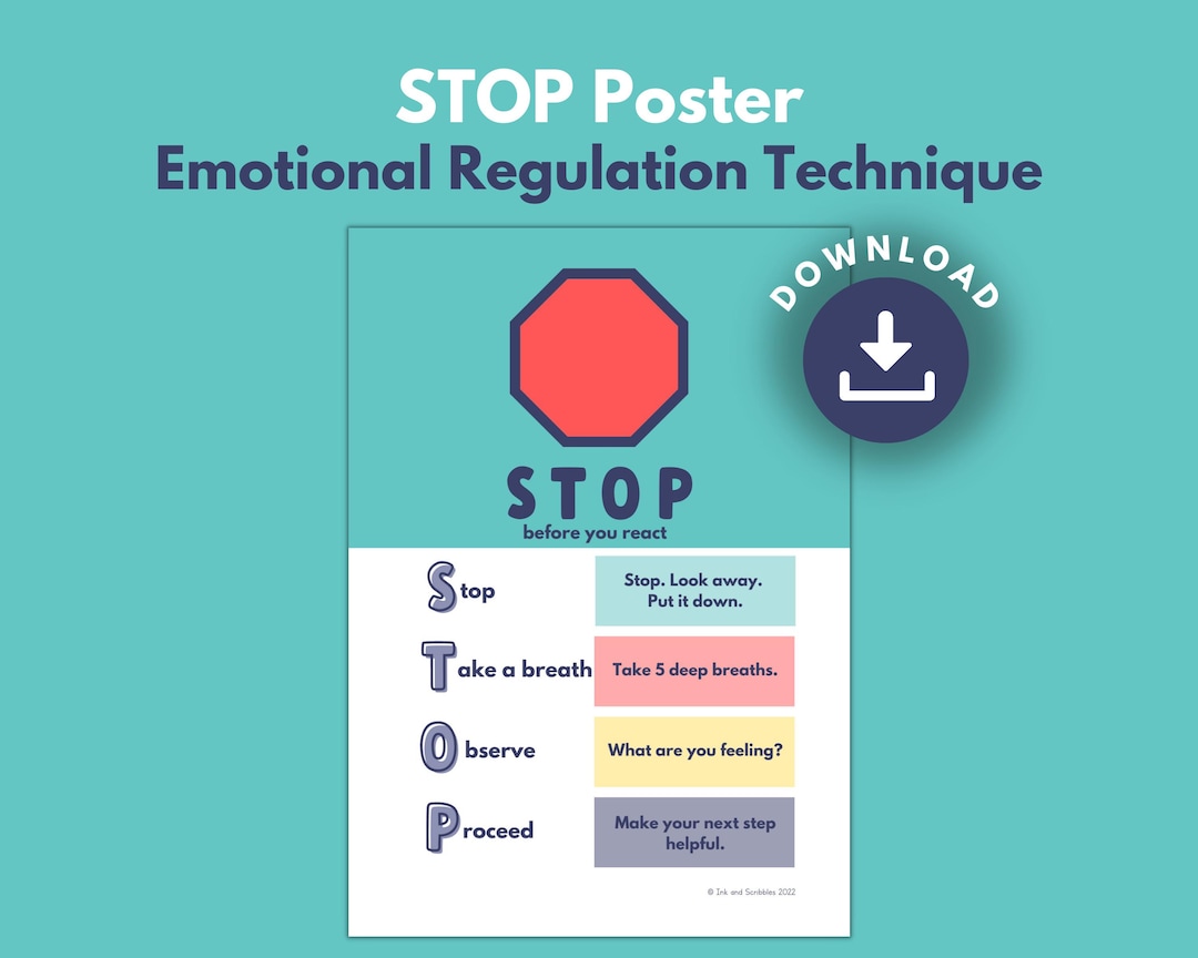 Coping Skills STOP Technique PRINTABLE Poster for Kids Emotional ...