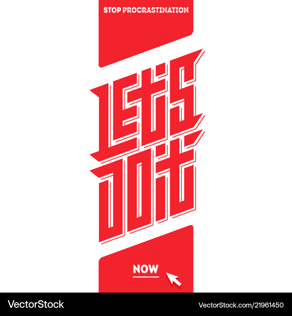 Stop procrastination lets do it now motivational Vector Image