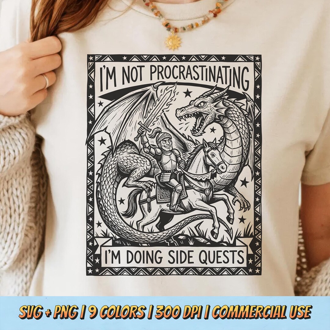 I'm Not Procrastinating PNG SVG - Funny Knight Dragon Quote Digital ...