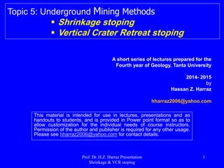 Shrinkage and Vertical Crater Retreat Stoping | PPT