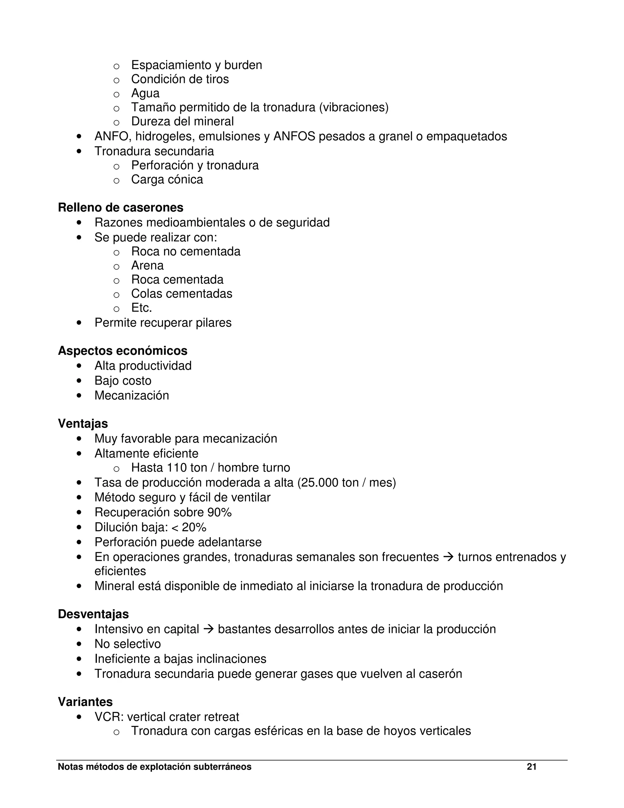 principales partes mineria: METODO SUBLEVEL STOPING