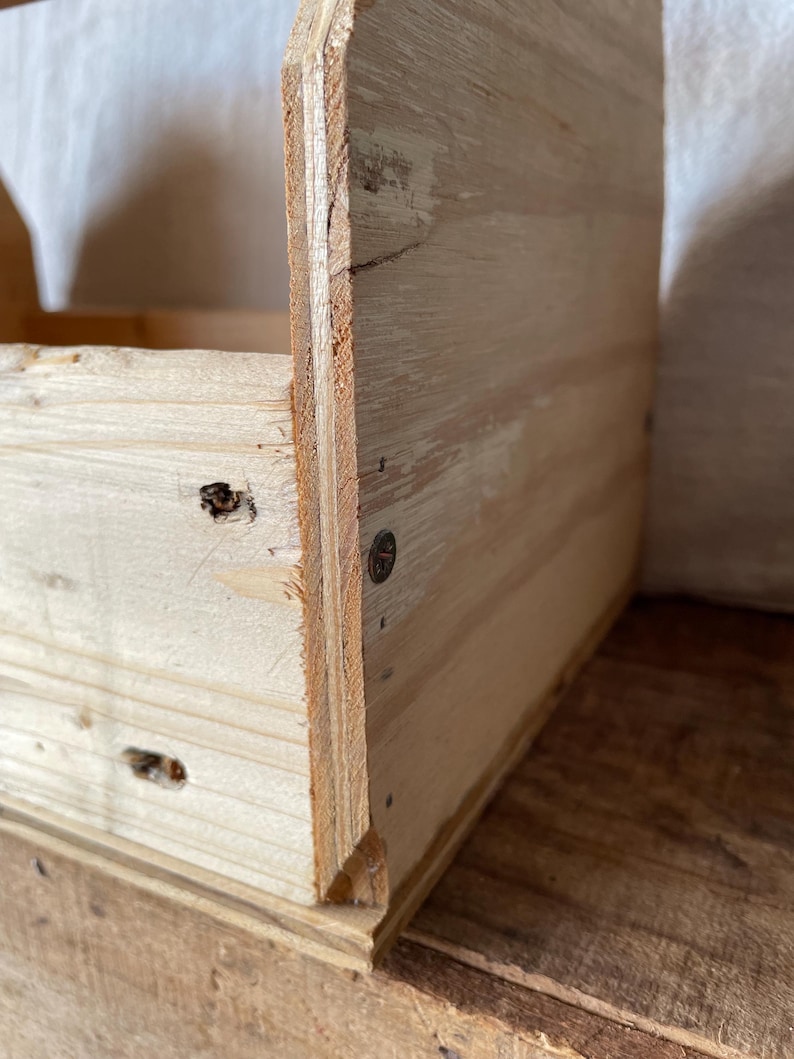 Raw Wood Tool Caddy | Rustic Pine Garden Tote, Farmhouse Storage Crate ...