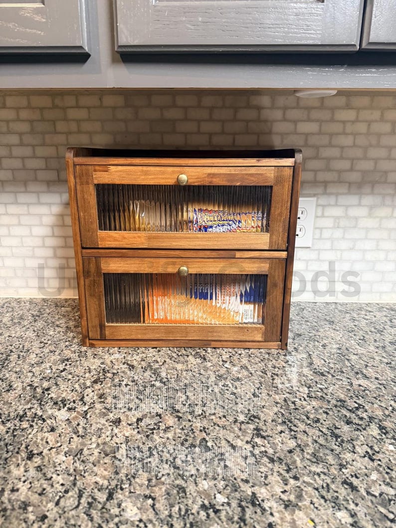 Corner Bread Box for Kitchen Counter Top, Wooden Breadbox, Bread Basket ...
