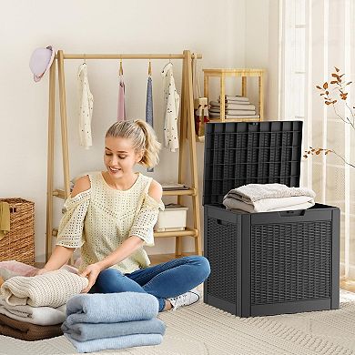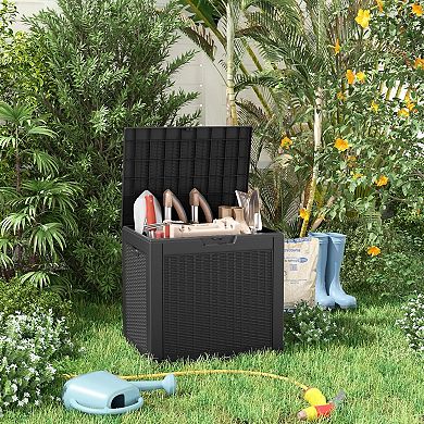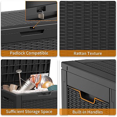EFU 35 Gallon Rattan Weave Deck Box, Lockable Resin Storage Container ...