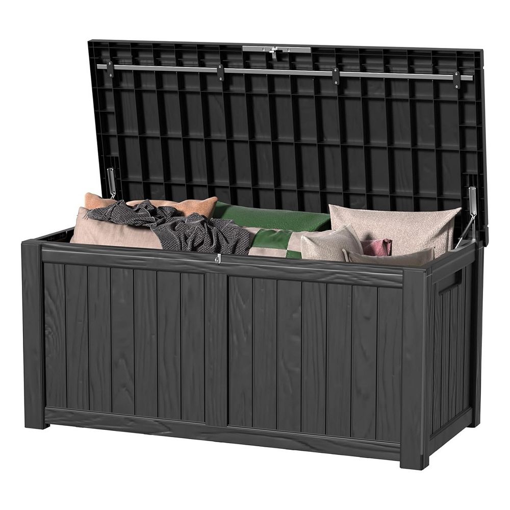 EFU 120 Gallon Weatherproof Deck Box with Hydraulic Rods, Lockable ...