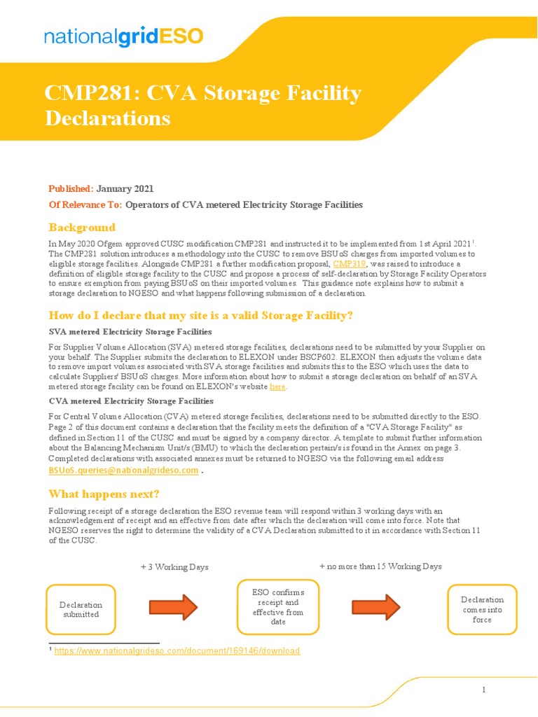 CVA Storage Facility Declaration Guidance Note - June 2021 Update | PDF