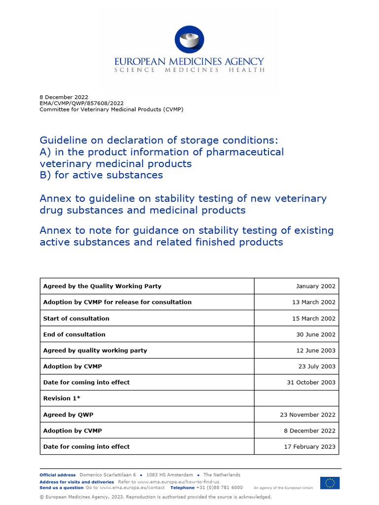 EMA guideline on declaration storage conditions