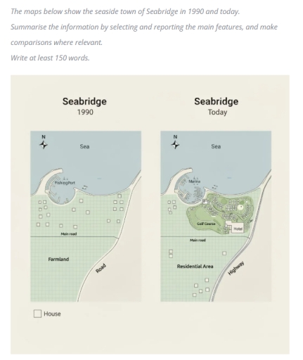 The maps below show the seaside town of Seabridge in 1990 and today ...