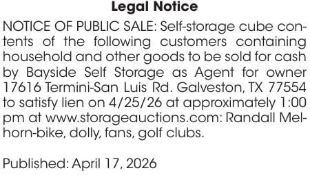 BAYSIDE STORAGE APRIL AUCTION | Legal Notices | The Daily News