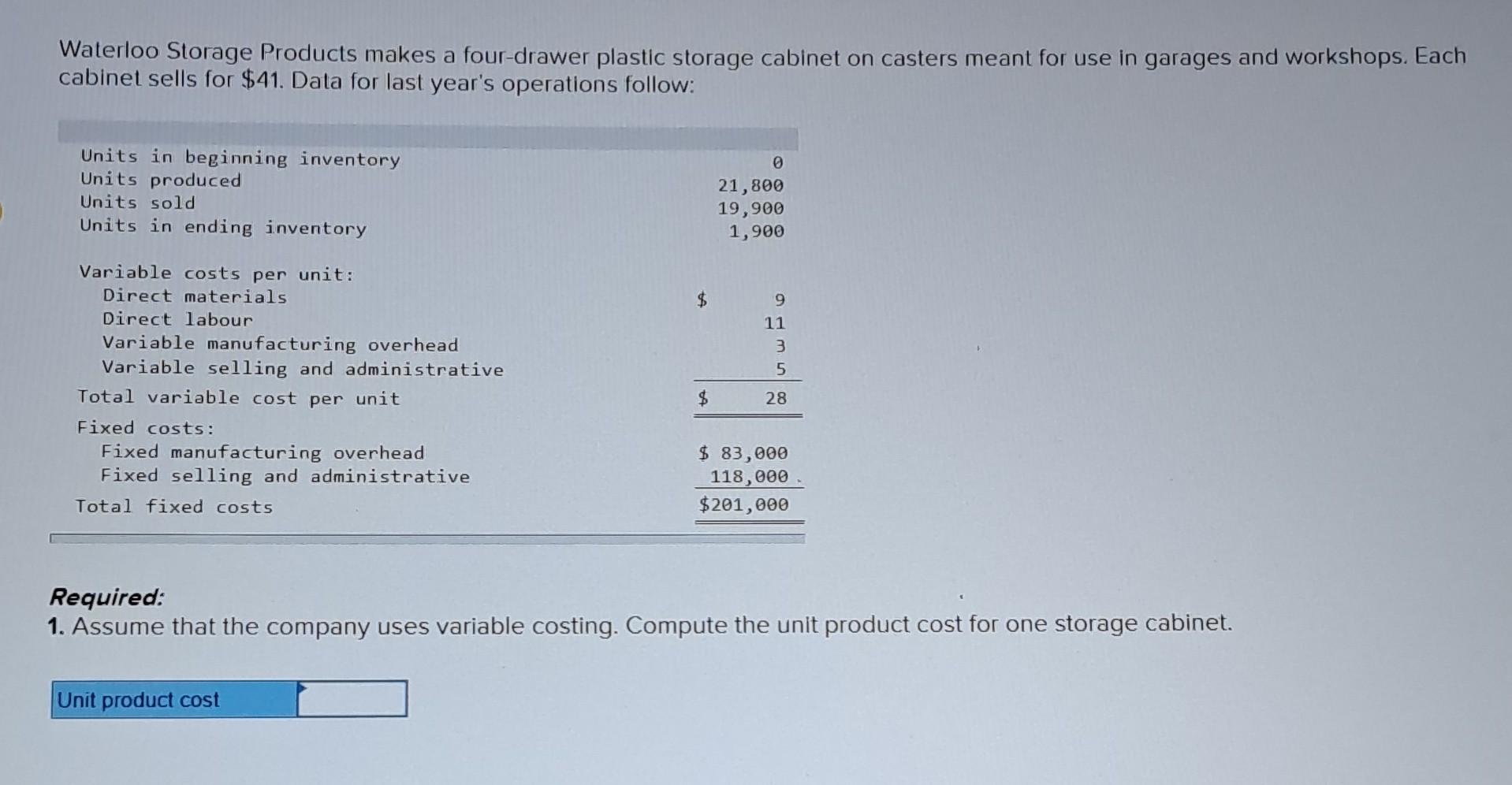 Solved Waterloo Storage Products makes a four-drawer plastic | Chegg.com