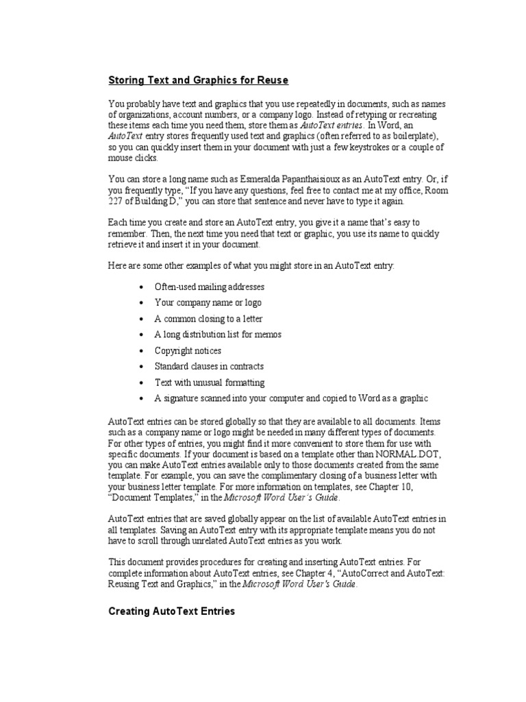 Storing Text and Graphics For Reuse | PDF | Microsoft Word | Computing