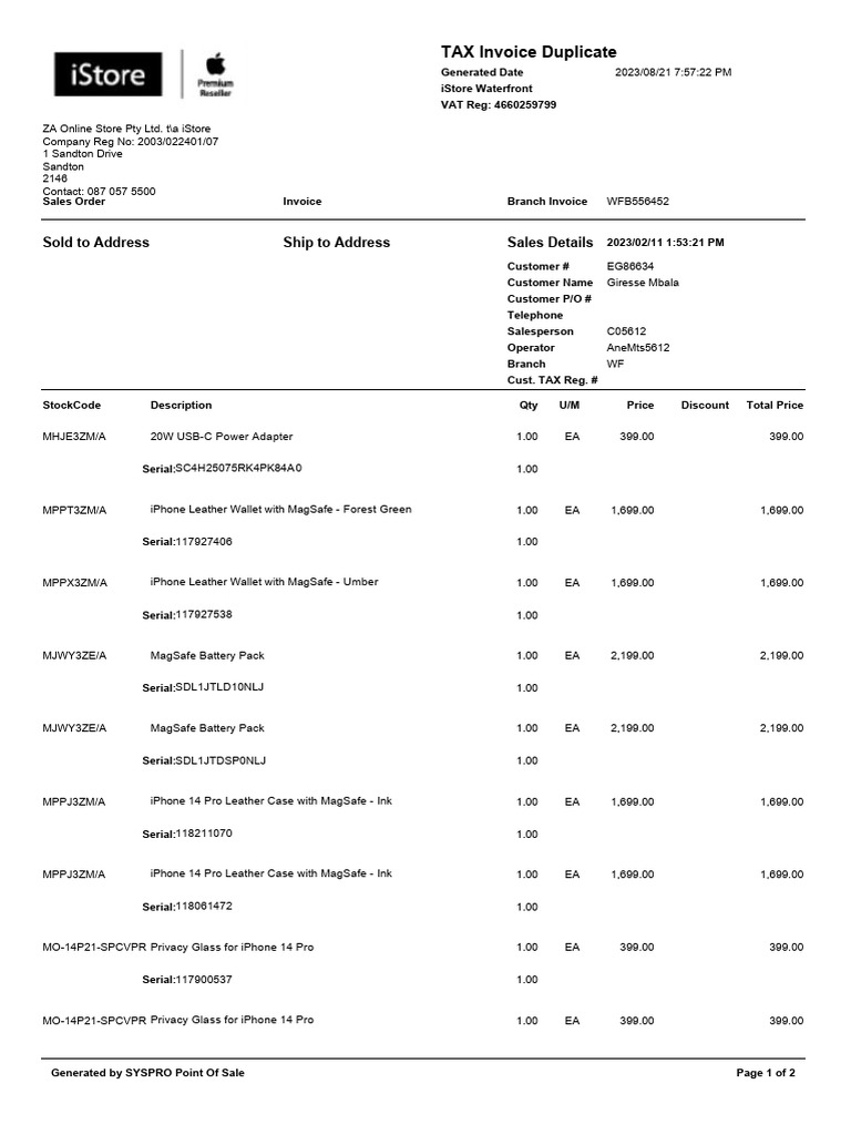 iStore Waterfront Tax Invoice Duplicate | PDF | Invoice | Receipt