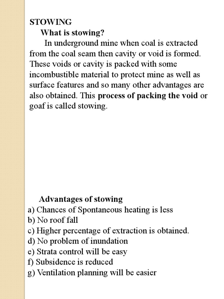 STOWING.pdf - Stowing When mineral is extracted from an underground ...